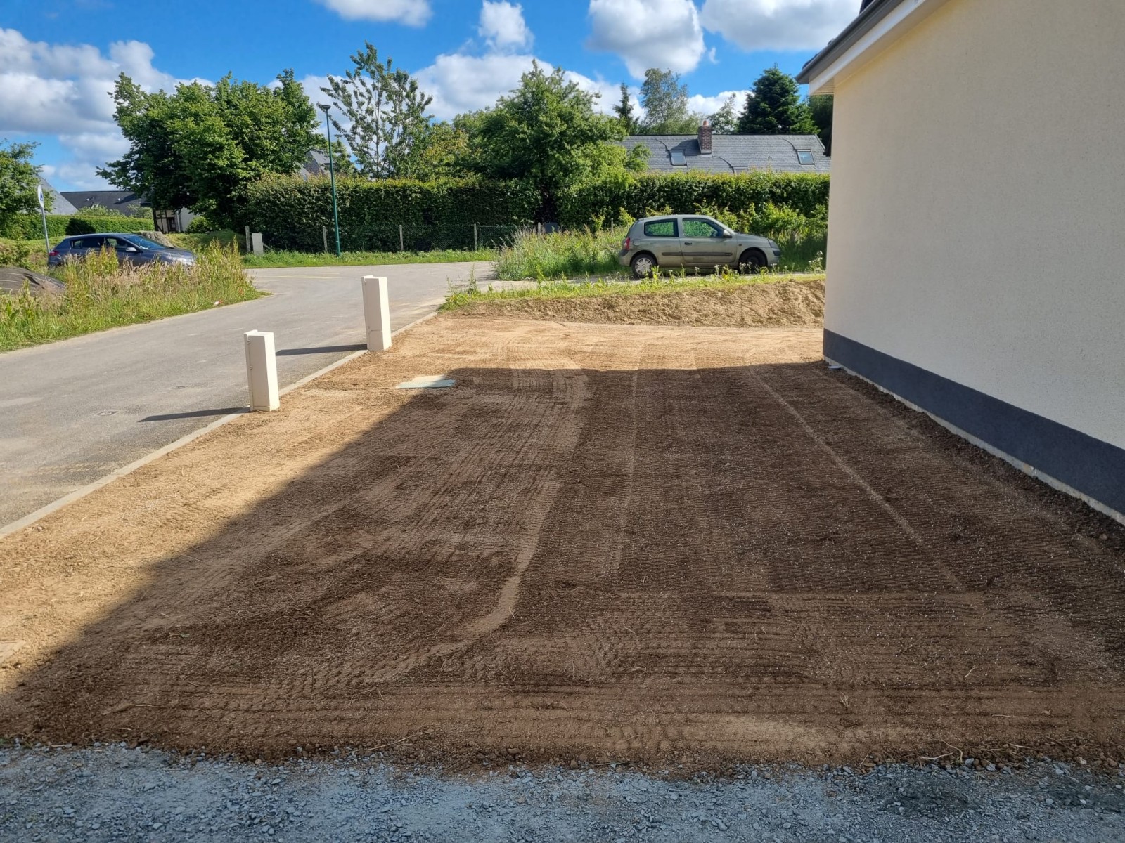 Nous intervenons après un terrassier qui lui a déjà placé la terre grossièrement, nous corrigeons les imperfections sur le terrain avec nos engins de terrassement.
